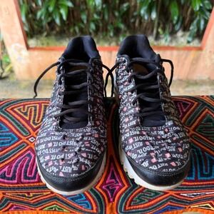 just do it print, black sneakers, textured leather, urban style, Tuned Air, collector's sneakers, bold branding, all-over print, signature midsole, retro athletic