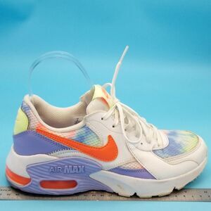 Inspired by the Nike Air Max 90, the Nike Air Max Excee is a celebration of a classic through a new lens. Elongated lines and distorted proportions on the upper bring the '90s look you love into a new, modern space. The Nike Air Max Excee in Purple Pulse Multi is a women's athletic sneaker released in 2021. This model features a vibrant color combinatio of white and gold on a mesh upper with the iconic Nike Air Max cushioning for comfort and support. The sneaker is designed with a stylish and modern look, suitable for both athletic activities and casual wear.