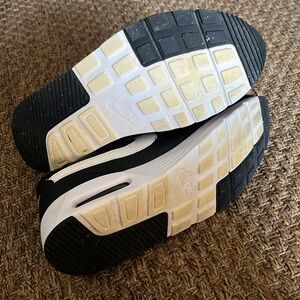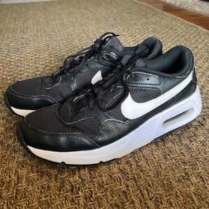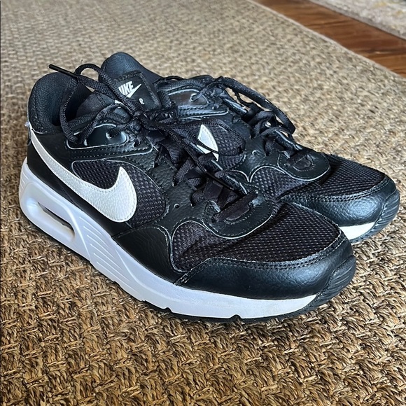 These Nike Air Max SC running shoes in classic black and white (women’s size 10) have been well loved but are still in great condition with plenty of life left! Light wear on soles and minor creasing from normal use, but no major flaws. Super comfortable with that signature Air Max support—perfect for workouts, walks, or everyday wear. A stylish and reliable pair looking for their next adventure!