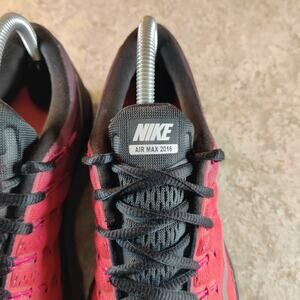 The Nike Air Max Shoes for women in size 8 feature a stylish ombre design in black, orange, pink, and silver colors. These athletic sneakers by Nike are part of the Air Max product line and have a low top shoe shaft style. With a cute and vibrant design, these shoes are perfect for gym or running workouts, offering both style and comfort for active women.