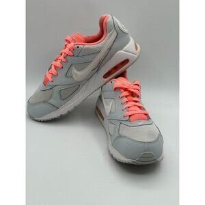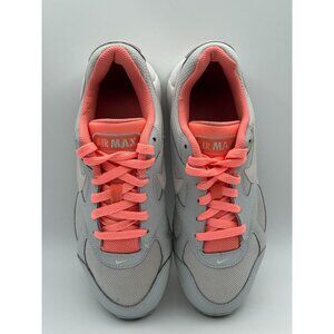 These Nike Air Max sneakers in gray and coral offer a striking look for casual outings or athletic activities. The airy design and cushioned sole provide comfort during prolonged wear.