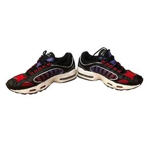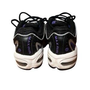 Elevate your athletic style with these Nike Air Max Tailwind IV sneakers. The black synthetic upper material is accented with psychic purple details, giving these shoes a unique and colorful look. Designed for women's size 8 feet, these sneakers offer cushioned comfort and breathability, making them perfect for walking, cross training, running, and jogging. The 90s sports theme is reflected in the CQ9962-001 style code, making these shoes a must-have for any athletic shoe collector. The Nike Air Max product line is known for its high-quality materials and construction, and these sneakers are no exception. Whether you're looking for a new pair of athletic shoes or a stylish addition to your sneaker collection, these Nike Air Max Tailwind IV sneakers are a great choice.