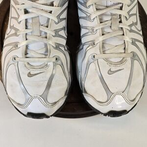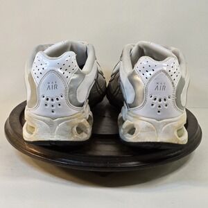 This pair of Nike sneakers is in fair used condition. There is wear to the leather and paint on the shoe. There is wear to the inner heel and tread as well. Please reach out with any questions and offers.