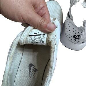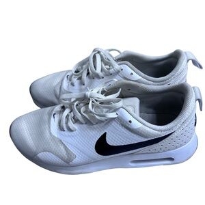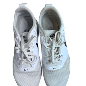 Sleek Nike trainers in white with bold black swoosh. Ideal for everyday comfort.