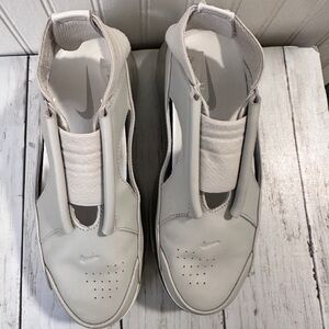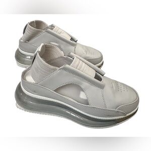 The Wmns Air Max FF 720 'Sail' features a bold construction on its upper to go with its signature exaggerated tooling. NO LACES! The shoe's upper features a white leather build that's cut out at the midfoot and heel, supported by a wraparound drawcord lacing system. The lace aglets add the only contrasting color in red, while underfoot, a 720 Max Air unit provides cushioning while contributing to the aesthetic. These are preowned in good condition.