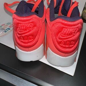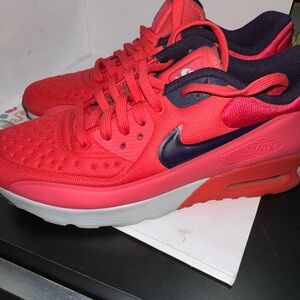 Bold Nike Air Max sneakers in bright red. Stylish and comfortable.