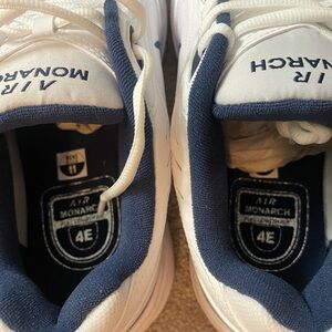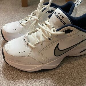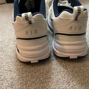 Classic white shoes with blue details. Features Nike swoosh on the side. New. Not worn.