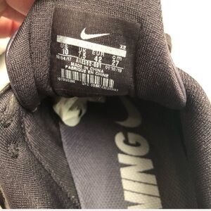Nike Air Pegasus 35 premium oil gray gridiron gray sneakers. Leather tongue. People say they have a slight purple cast. Most comfortable sneakers ever! Lots of life left. I wear indoors to walk on treadmill and buy new ones every few months no matter what because of foot & shin issues. I got these the end of January 2019. Size 10. Nike runs 1/2 size small- anything else I’m a 9.5. Smoke free home