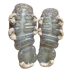The Nike Air VaporMax Flyknit 3 Phantom-Sunset Pulse Women's 9 is a stylish and comfortable sneaker designed for active women. Featuring a lace-up closure and a low-top silhouette, this shoe is made with a blended fabric upper material called FlyKnit that is breathable and cushioned for comfort. The rubber outsole provides durability and a solid grip, making it suitable for running and jogging activities during the spring, summer, and fall seasons. The multicolor design with accents of the Nike logo adds a trendy touch to this athletic shoe from the Nike Air VaporMax product line.
