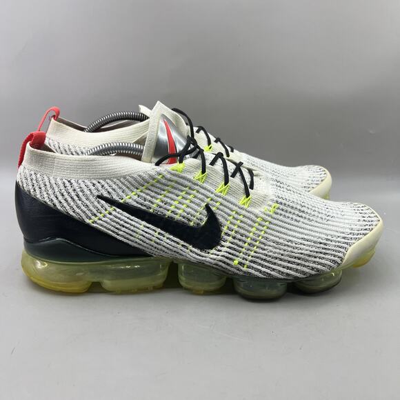Nike Air VaporMax Flyknit 3 Running Shoes Men Size 14 White Black Green Sneakers