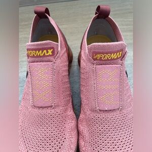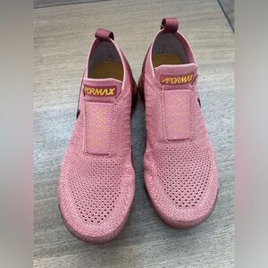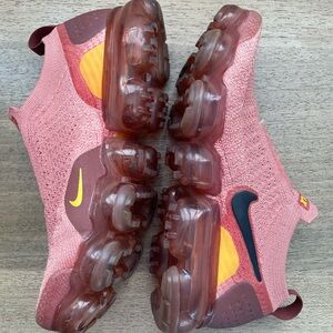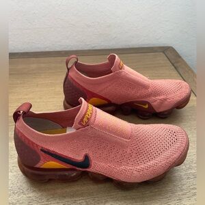 The Nike Air VaporMax Moc 2 Terra Blush (Women's) replaces the solid midsole with a clear VaporMax unit in a terra blush undertone that runs the length of the footbed.