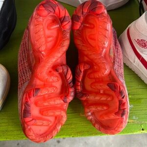 Vibrant red Nike athletic shoes. Sleek design with breathable mesh. Perfect for sports and casual wear.