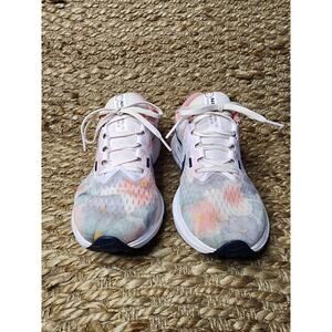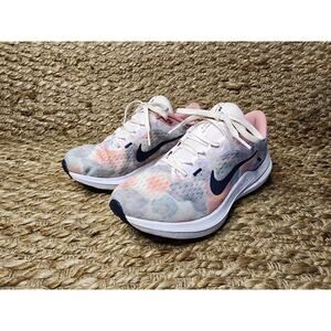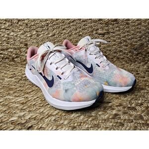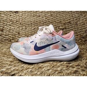The Nike Air Winflow 10 Premium Size 8 Women's Athletic Running Shoe in Pearl Pink is a stylish and functional sneaker designed for active women. Featuring a lace-up closure and a low-top silhouette, this shoe offers a comfortable and adjustable fit. The floral watercolor design, embroidered accents, and breathable fabric lining add a touch of femininity to the shoe. With cushioned and comfortable features, this shoe is perfect for various activities such as running, jogging, walking, and cross-training. The rubber outsole provides durability and support for all your athletic endeavors.