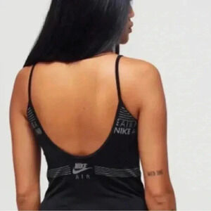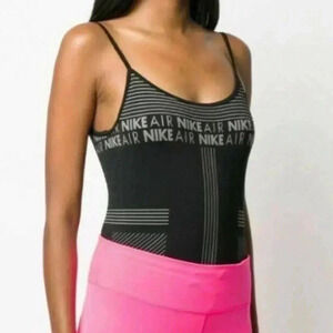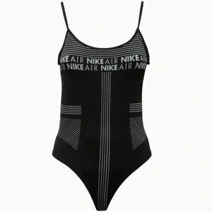 Women’s Nike Air black and gray stretch thong bodysuit in EXCELLENT condition. {Material and size tag is missing} Hand wash for best results. Size: Believe it to be a Small - pls see measurements below.