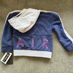 Nike Air Zip Hoodie Girls Size 5 NWT Blue Void Pink Logo Full Zip Jacket