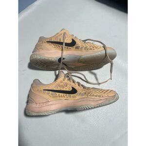 super cool peach Nike Air Zoom Cage womans size 8.5 = shows some wear and the dog ate the bottom of one shoelace....lots of life left! See photos for details.