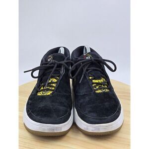 The Air Zoom Down Rock 'N7' released as part of the N7 series in collaboration with rapper Taboo. The shoe features a black suede upper with arrow detailing across the toe box. A beadwork-style print appears in the yellow tongue and Swoosh, with special branding on the insole. Underfoot, a white Zoom Air midsole provides cushioning and contrast, giving way to a translucent rubber outsole with a further pattern.
