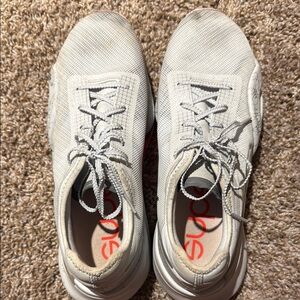 Nike Air Zoom sneakers in light gray and white with blue accents. Perfect for everyday comfort. These are flawed with stains near the toes and moderate use and dirt on the soles, general creasing and tinier stains throughout. Please browse the rest of my closet and consider making bundles up to 5 pounds of inventory all for just one shipping charge in the same order! I can certainly give a discount as well!