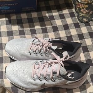 Experience comfort and style with Nike women's running shoes. Featuring a sleek tortoise shell swoosh. Pink laces. Zoom air cushioning .Worn once . Excellent condition.non smoking home