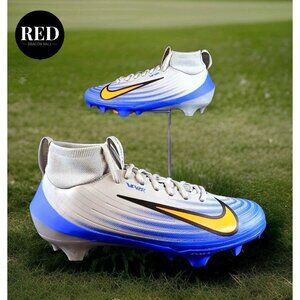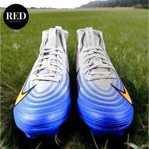BRAND NEW - NWOT - NO BOX -The Nike Air Zoom Vapor Pro 1 Grey Blue Football Cleats FB3298 001 in Men's Size 8.5 are a stylish and comfortable option for football players. Featuring a lace-up closure, mid-top shoe shaft style, and lightweight design, these cleats offer a snug fit and support during gameplay. The colorblock pattern in gray with accents of blue and orange adds a pop of color to the overall design, making them a standout choice for athletes. Made with high-quality materials and incorporating Nike's Air Zoom technology, these cleats provide both performance and comfort for football enthusiasts.
