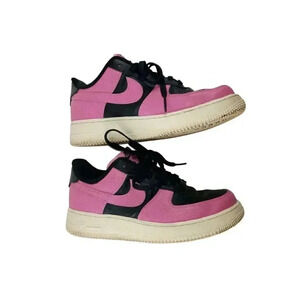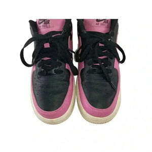 Nike Air force 1 Womens Sneakers Pink Black Leather Round Toe Lace Up Size 8.5