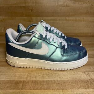 Nike Air Force 1 '07 LV8 Fresh Mint Mens Size 10 Shoes Iridescent Metallic. Good condition a few creases at the toe box but clean lowers are yellowing