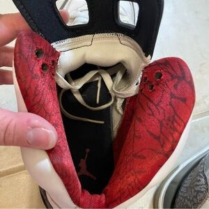 Very good condition Air Jordan high top basketball shoes. Please view all photos for proper description of condition and flaws. These are very high quality shoes, only some minor cosmetic flaws. Still lots of life left in them.
