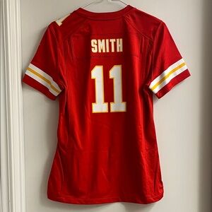 Vibrant red jersey with number 11. Features team patch and white stripes. Nike logo on sleeve.