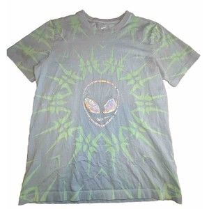 The shirt is sized as small and is pre-owned, but still in great condition. The Nike Alien Festival Graphic T-Shirt is perfect for those who want to make a statement at a festival or just show off their unique style. Don't miss out on your chance to own this one-of-a-kind piece.