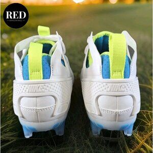 BRAND NEW - NWOT - NO BOX - The Nike Alpha Huarache 9 Elite Mid NBY Lacrosse Cleats are designed for men who are looking for high-performance athletic footwear. These mid-top style cleats feature a lace-up closure for a secure fit, cushioned and comfortable insole for all-day wear, and a durable synthetic outsole for traction on both indoor and outdoor surfaces. With a color scheme of white, vivid blue, and volt, these cleats are perfect for lacrosse, rugby, football, and other various athletic activities. The Nike Alpha Huarache 9 Elite Mid LAX cleats combine style and functionality to meet the needs of both players and trainers alike.