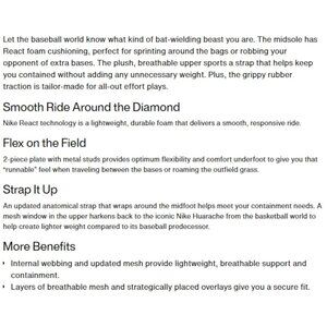Elevate your performance on the field with the Nike Alpha Huarache Elite 4 Mid Metal Baseball Cleats. Designed for comfort and durability, these cleats provide superior traction and support, ensuring you stay ahead of the game. Perfect for athletes seeking style and functionality.