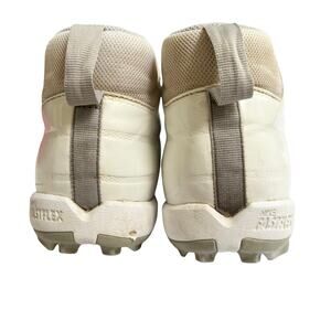 Condition: Pre-owned, with normal signs of use. There is a small cosmetic flaw on the back heel where some surface film is worn off (see photos). This does not affect performance, support, or durability of the cleats. Soles and studs remain in good shape with plenty of life left.