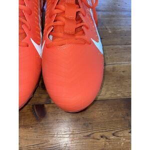 Elevate your game with the Nike Alpha Menace Pro 2 Mid Football Cleats, a perfect blend of speed and agility for the sport's enthusiast. Designed with a vibrant orange colorway, these cleats are sure to stand out on the field. Crafted for the athlete who wears size 13, the fit is complemented by a medium width, ensuring a comfortable experience with every tackle and dash. Hailing from the renowned Nike Alpha product line, these cleats are engineered to provide superior traction and support. Manufactured in Vietnam, the Alpha Menace Pro 2 model AQ3209-800 is tailored for the football player seeking both style and performance. Whether you're gearing up for a competitive game or honing your skills at practice, these cleats are built to keep up with your every move.