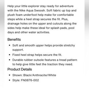 Nike Aqua Swoosh is ready for it all. Soft fabric up top and plush foam underfoot help make for comfortable steps while a heel strap secures the fit