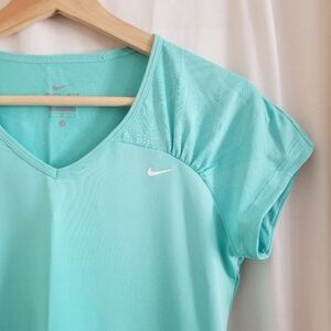 Nike women's dri-fit v-neck tee a light aqua or turquoise color. Size L. Very gently used - worn once and hand washed.