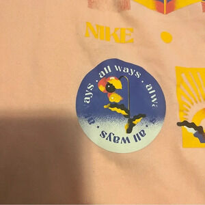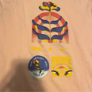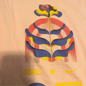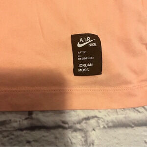 Keywords: Nike, T-shirt, Graphic Tee, Artist in Residence, Jordan Moss, Casual Wear, Streetwear, Athleisure, Designer Tee, Unique Design, Pink Shirt, Cotton Tee