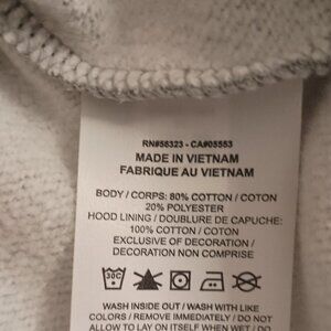 Material: Sweatshirt and Pants: 80% Cotton/20% Polyester; Hood Lining: 100% Cotton