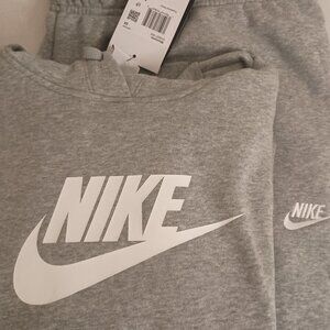 Brand new with tags Nike gray sweatsuit set featuring a cozy hoodie sweatshirt with kangaroo front pocket and Nike logo on the chest, paired with matching sweatpants with embroidered Nike logo on the upper leg. Soft, comfortable, and perfect for lounging, travel, or athleisure wear. Women’s size 2X. New with tags condition—never worn….$130 retail.