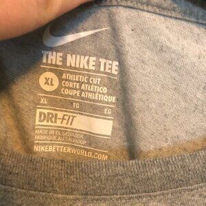 Nike Athletic Cut T Shirt Size Extra Large. Worn only a couple times and in great condition. Gray shirt with black lettering.