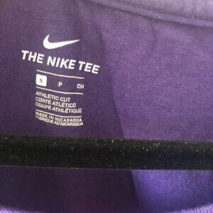 Nike Running T Shirt is in a size small. The top is in an athletic cut and was only worn once. It is in great conditions. Top is purple with bright orange letters.