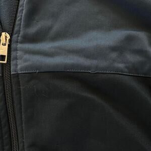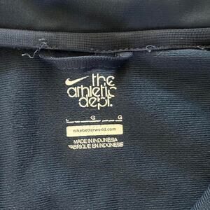 90s navy Nike athletic jacket. Men's Large. Has some minor pulling of thread, pictured, but otherwise in good vintage condition.