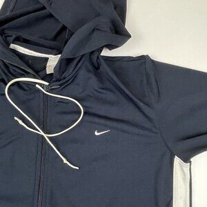 Nike Athletic Hooded Active Jacket Women’s L(12/14) Poly Stretch Run Sports Blue