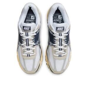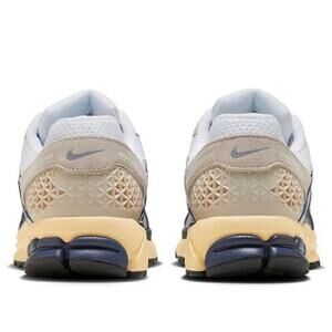 Stylish Nike athletic shoes. Features navy and beige design. Comfortable and durable.