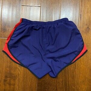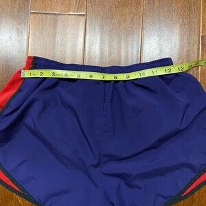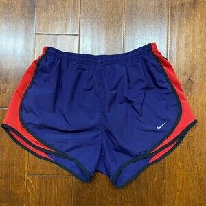 Prepared for any workout, these Nike athletic shorts feature Dri-Fit technology to help keep you cool and dry. The women's size medium status ensures a comfortable fit. Worn, but in great condition, these purple and red shorts are the perfect addition to your activewear wardrobe.