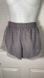 Grey material with grey Nike logo. Side mesh ventilation in a lighter grey. Grey stripes outline the sides and hem short openings. Grey drawcords inside waistband. Elastic waistband. Curved hem.