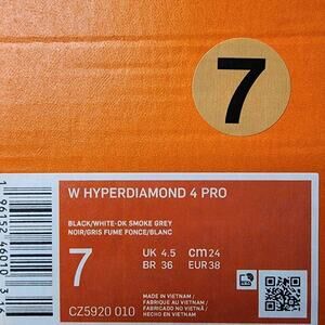 New with box (lid missing), size 7. Nike Hyperdiamond 4 Pro Softball Cleats with renew cushioning drag on toe. Please see pics for details. No rips, tears, or stains noted. Smoke-free, ask any questions. Shop my closet for more great items: BUNDLE, BUNDLE, BUNDLE for discounts!!!