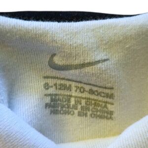 Nike Baby 6-12m Long Sleeve Bodysuit Hat Booties 3p Set Center Swoosh BnW Snaps