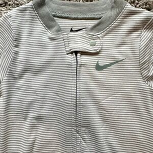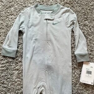 Keywords: Nike, baby, sleeper, pajamas, onesie, footed, striped, mica green, 9M, new with tags, NWT, infant, sleepwear, baby clothes