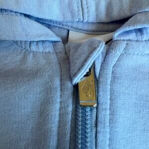 Size 6 months, Nike baby blue hooded coverall. Fully zips up the front. Soft and cozy! No flaws, very very good used condition.
