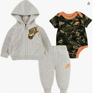 Nike Baby Boy 3 Piece Camo Set, Jogger Pants, Zip-Up Jacket and Bodysuit (6 M)